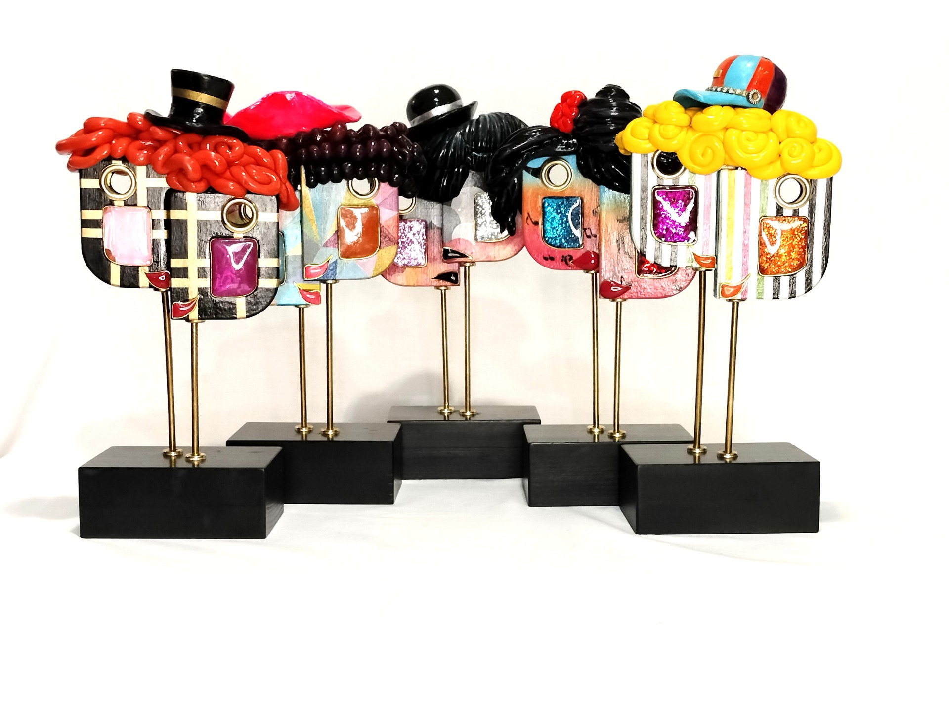 Hace tiempo que llevaba acariciando la idea de iniciarme en la escultura. Empecé por probar y me gustó el resultado. Aquí está una muestra de los trabajos que he realizado hasta la fecha, son coloridas, como mis últimos trabajos, en algunas aprovecho para reciclar recipientes de vidrio y son de pequeño tamaño, todas creadas de forma totalmente artesanal. Seguiré porque me gusta, eso sí, sin dejar la pintura que es mi verdadera pasión.